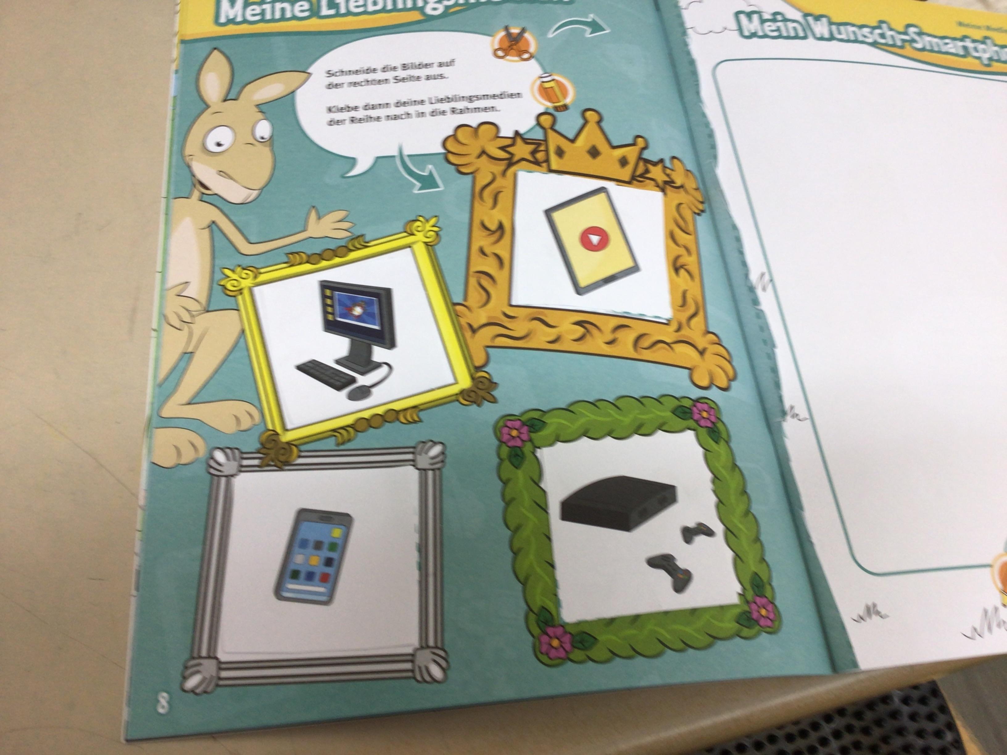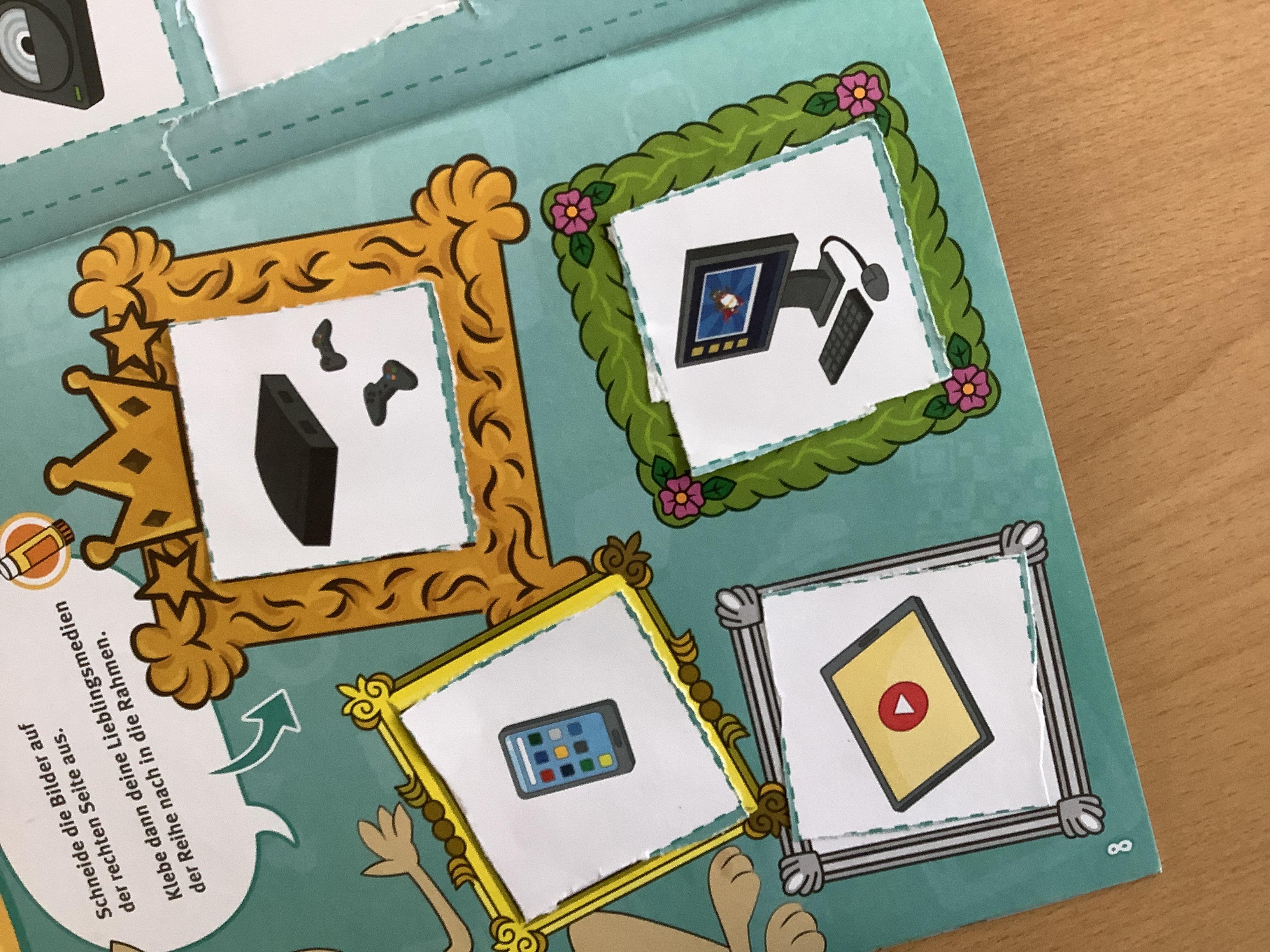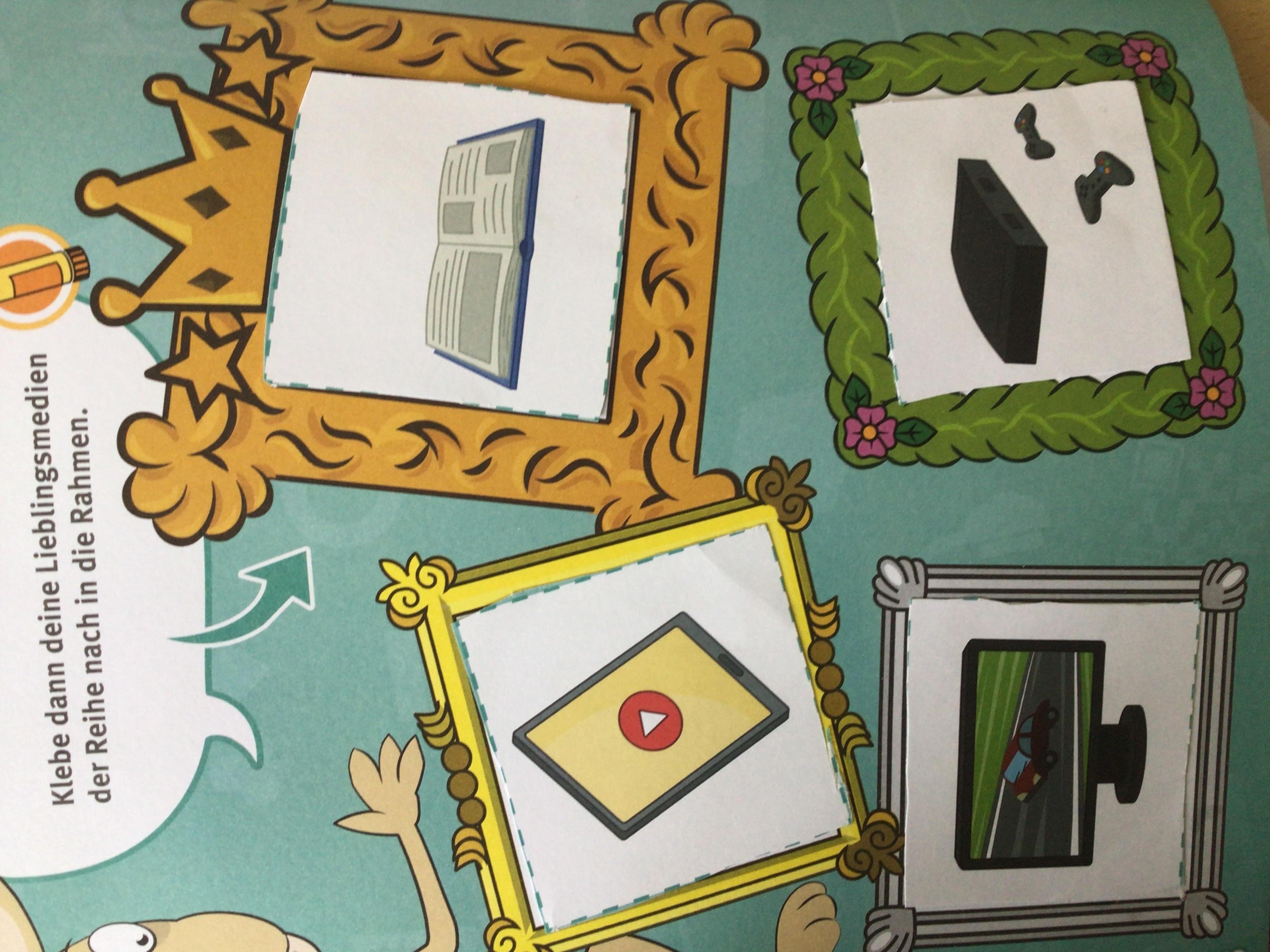 • Suche dir aus den Bildern auf Seite 9 deine Lieblingsmedien aus und klebe sie auf Seite 8.