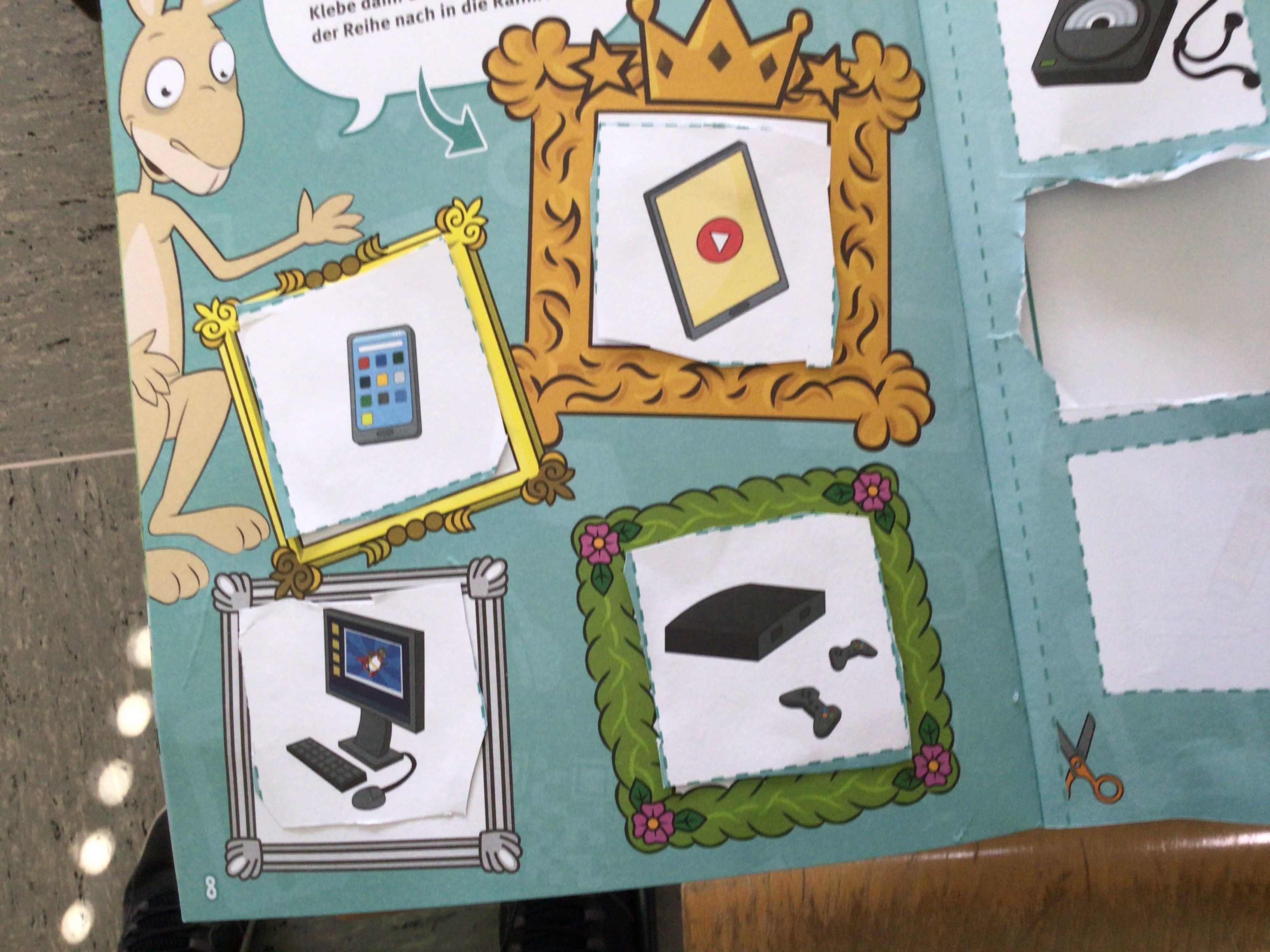 • Suche dir aus den Bildern auf Seite 9 deine Lieblingsmedien aus und klebe sie auf Seite 8.