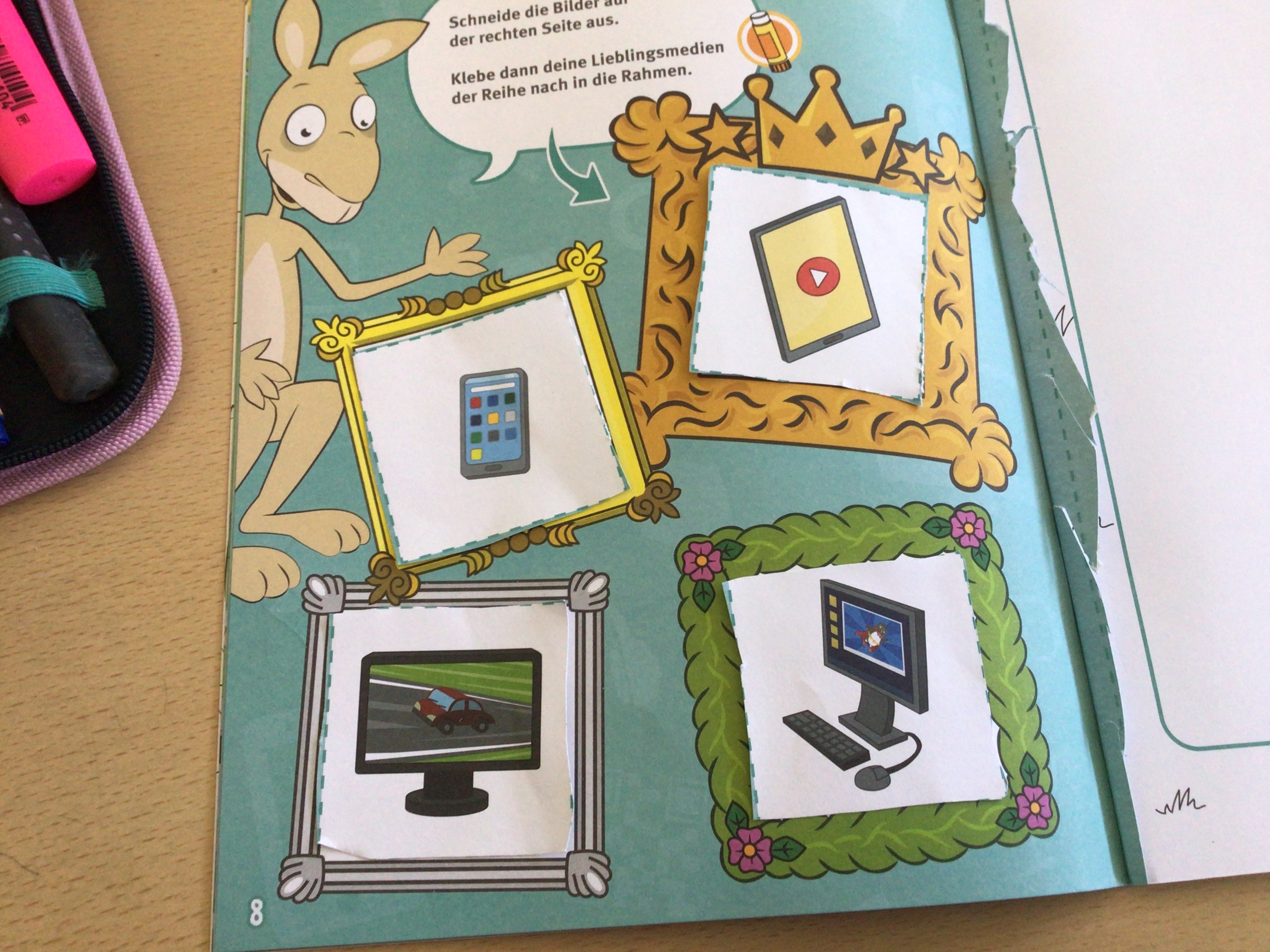 • Suche dir aus den Bildern auf Seite 9 deine Lieblingsmedien aus und klebe sie auf Seite 8.