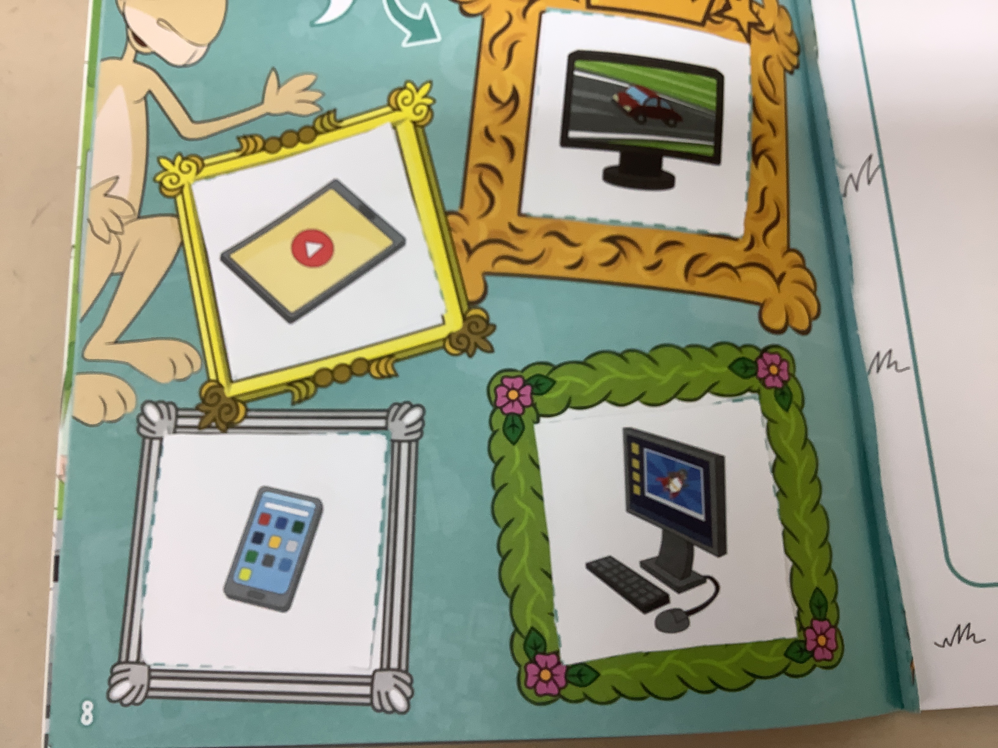 • Suche dir aus den Bildern auf Seite 9 deine Lieblingsmedien aus und klebe sie auf Seite 8.