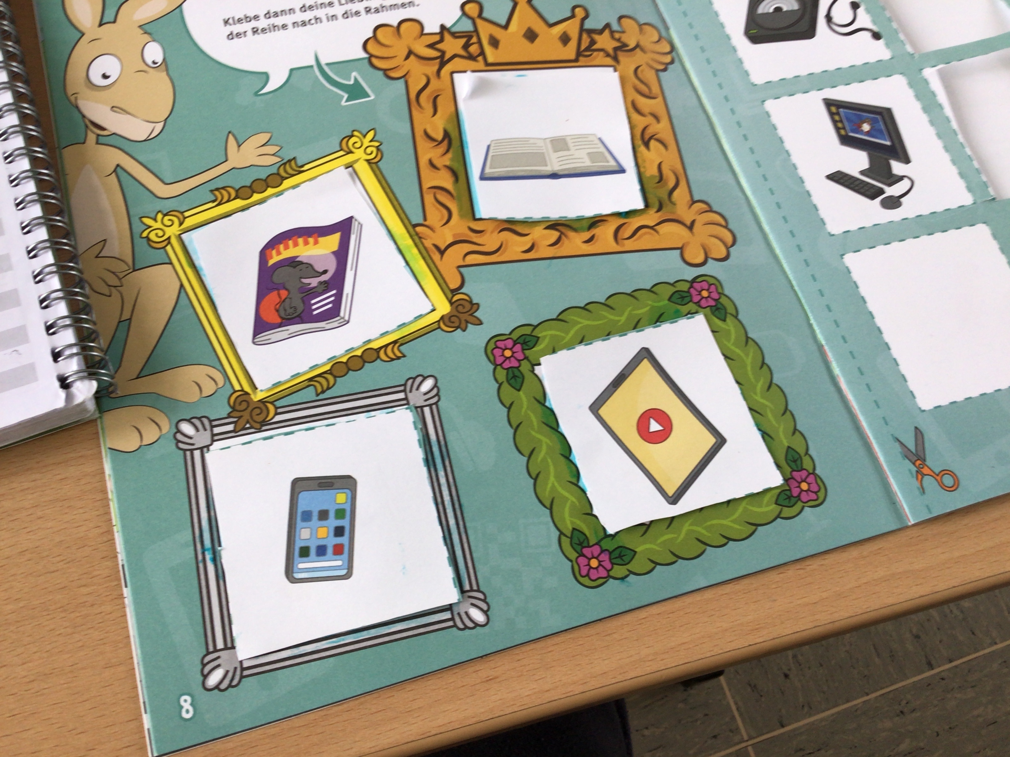 • Suche dir aus den Bildern auf Seite 9 deine Lieblingsmedien aus und klebe sie auf Seite 8.