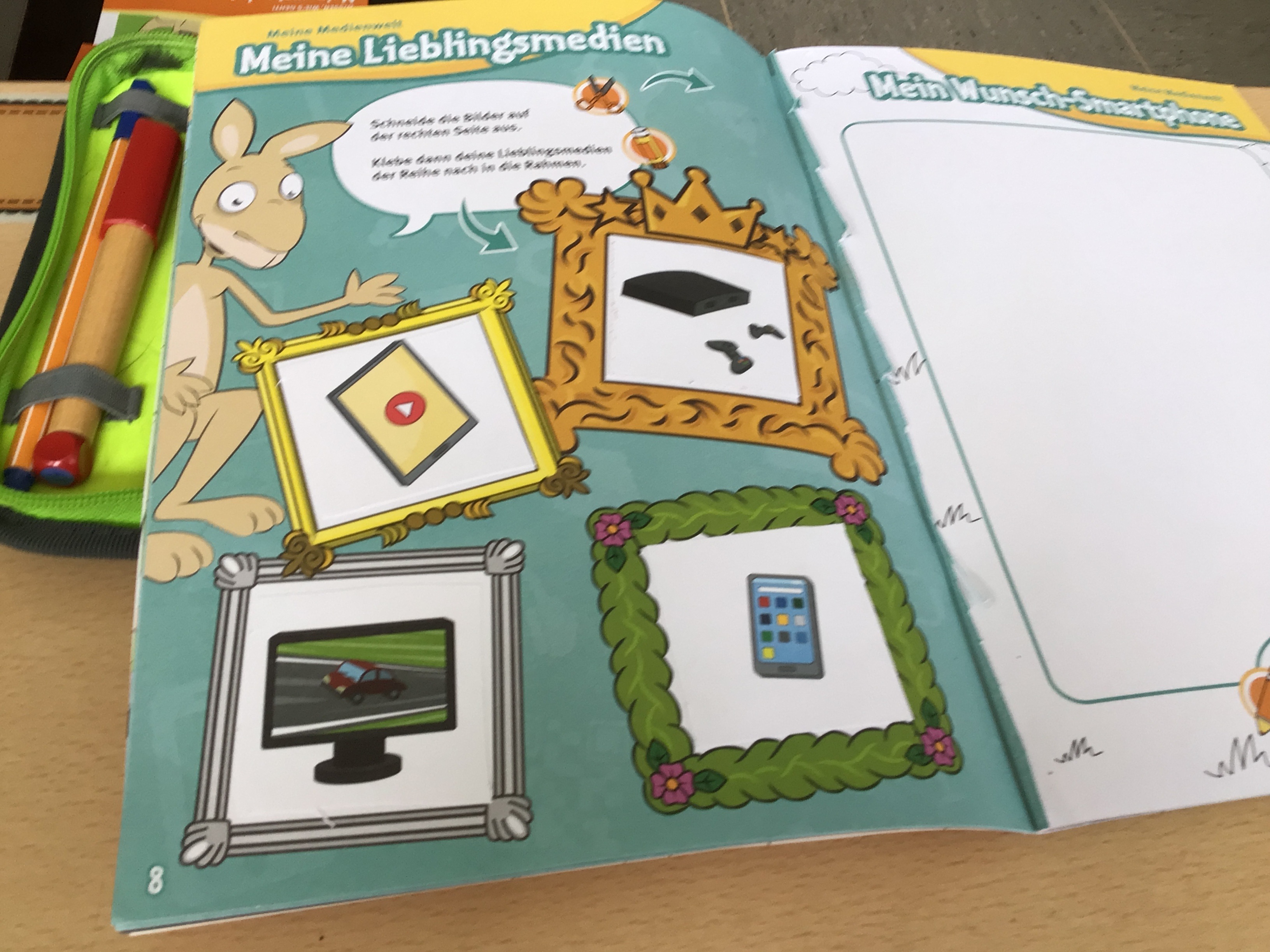 • Suche dir aus den Bildern auf Seite 9 deine Lieblingsmedien aus und klebe sie auf Seite 8.