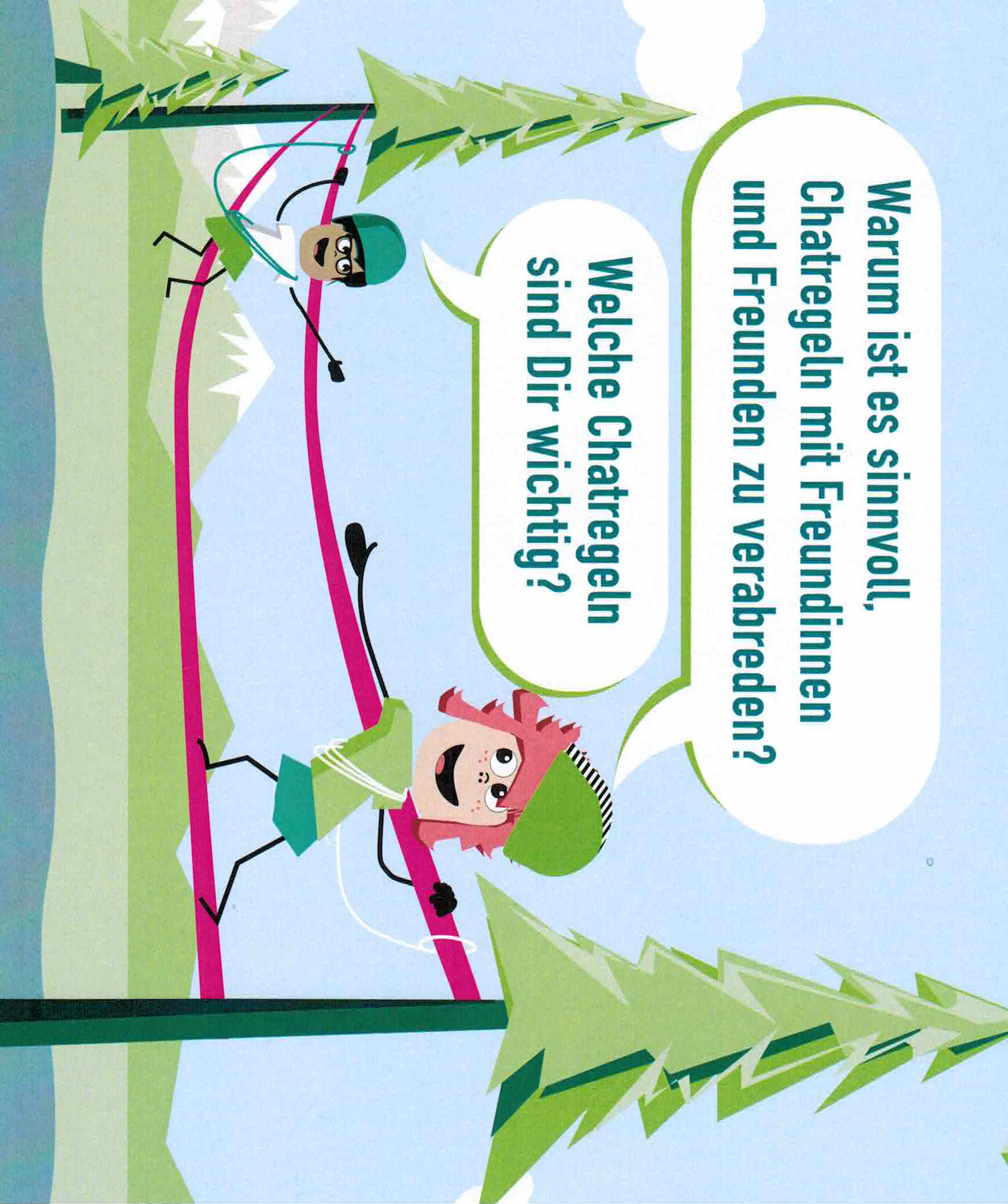 Diese Beispiele zeigen, wie wichtig es ist, ein paar Regeln zu haben. Eine wichtige Regel ist zum Beispiel, dass im Chat niemand beleidigt oder gelästert wird. Das sollten alle respektieren.